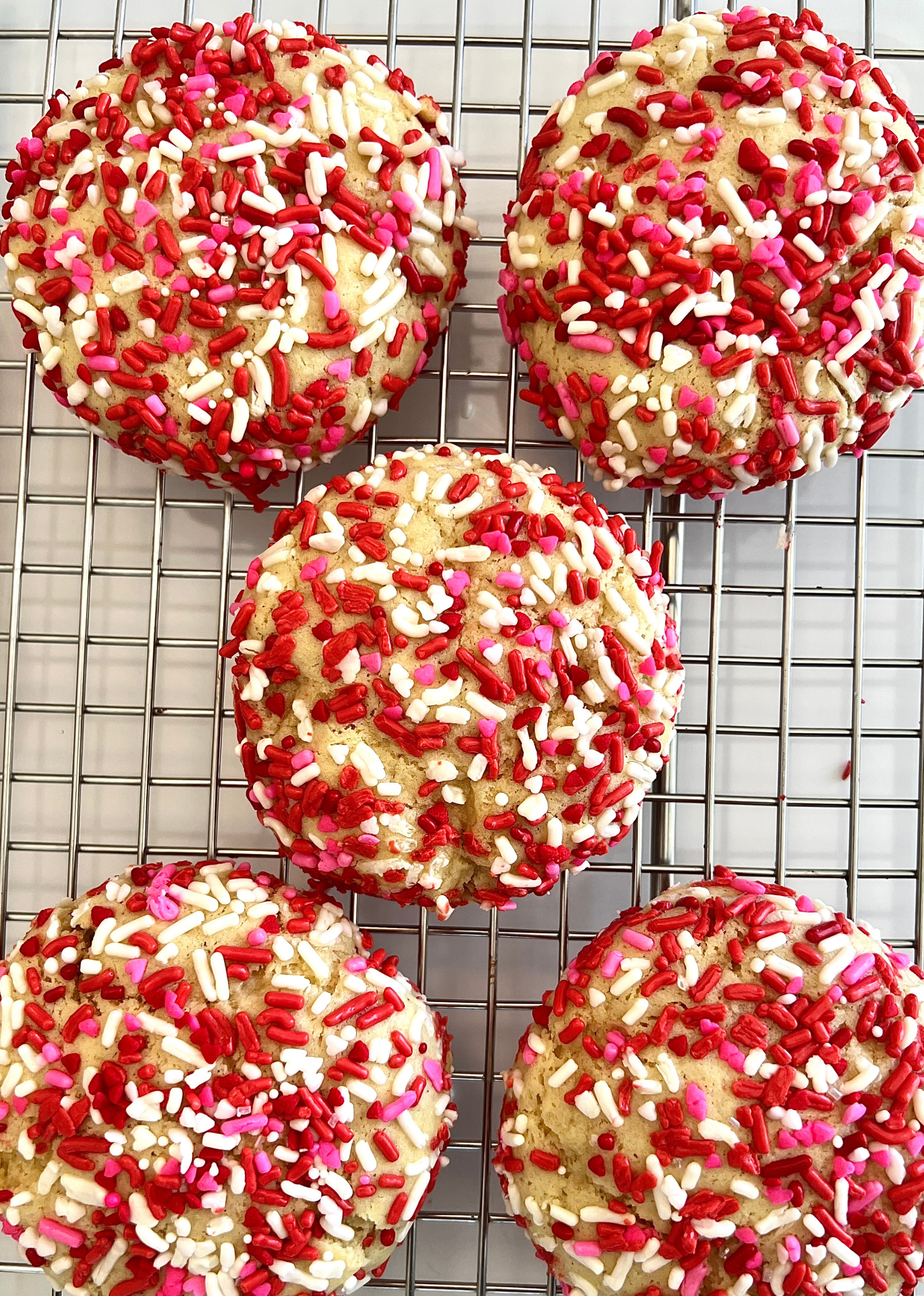 Sugar cookie LOADED with colorful Valentines Day sprinkles.