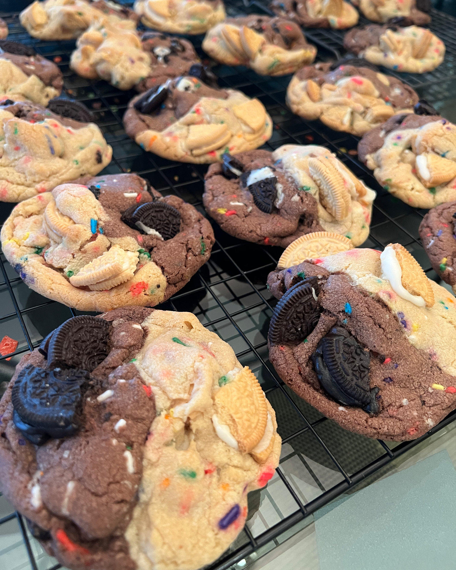 Flour, Butter, Brown Sugar, Sugar, Oreo’s, Sprinkles, Egg, Vanilla, Baking Soda, Cornstarch, Salt